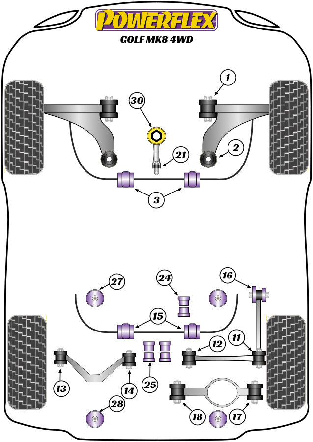 Przednie dolne mocowanie silnika, hybrydowa tuleja (Duża) - Drogowa Powerflex Road Series Volkswagen Golf & Golf MK8 (2020 - )\Golf R MK8 4WD (2020 -) PFF85-831