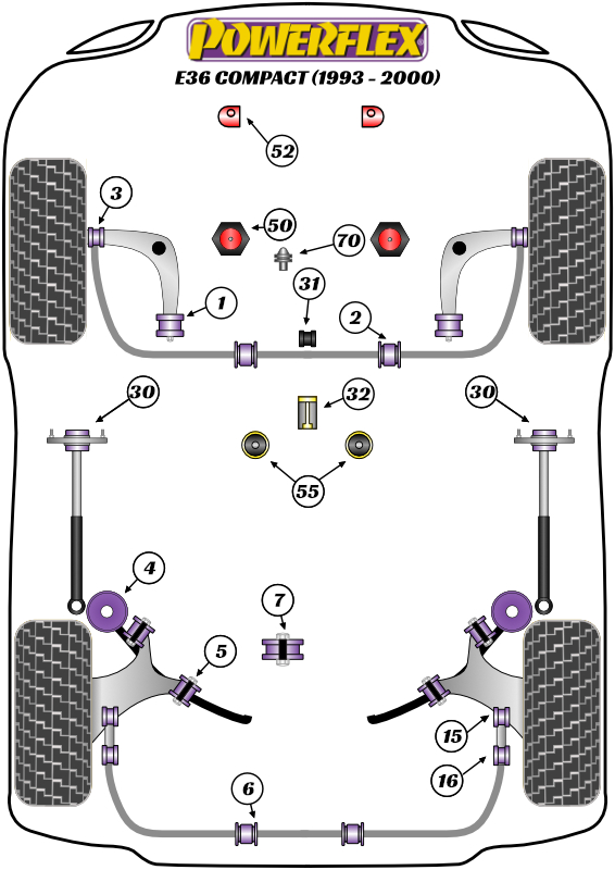 Regulowana poduszka silnika Powerflex Road Series BMW 3 Series & E36 Compact (1993-2000) PFF5-4650
