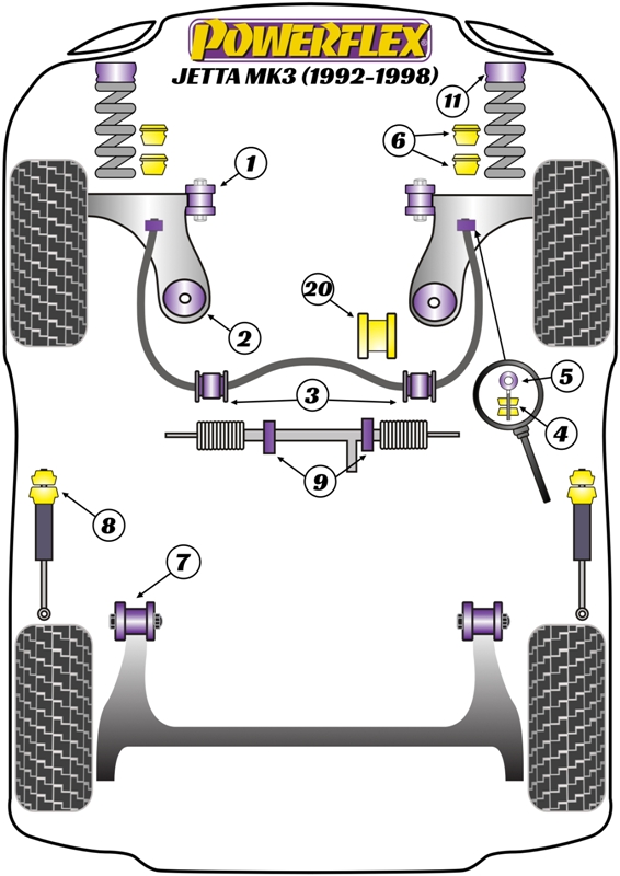 Tuleja górnego mocowania tylnego amortyzatora Powerflex Road Series Volkswagen Jetta Models & Jetta MK3 A3 (1992 - 1998) PFR85-240