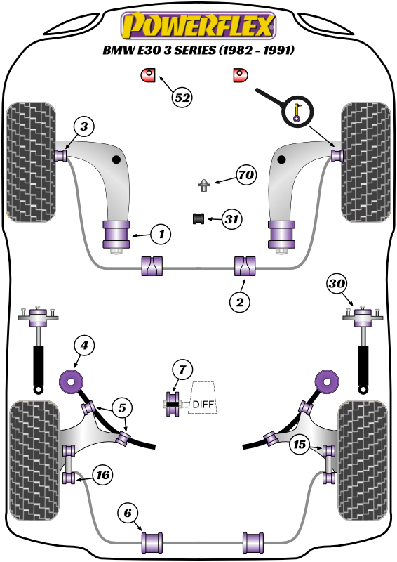 Tuleja mocowania tylnej belki Powerflex Road Series BMW 3 Series & E30 inc M3 (1982 - 1991) PFR5-305