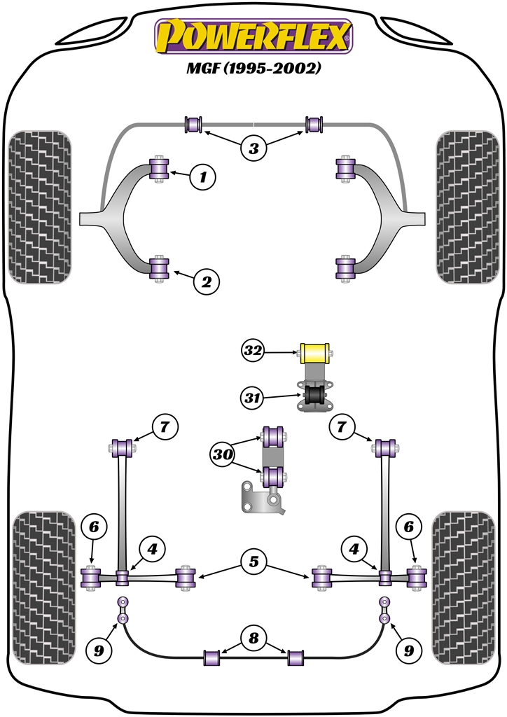 Tuleja połączenia dolnego tylnego wahacza z piastą Powerflex Road Series MG MGF (1995 - 2002) PFR42-221