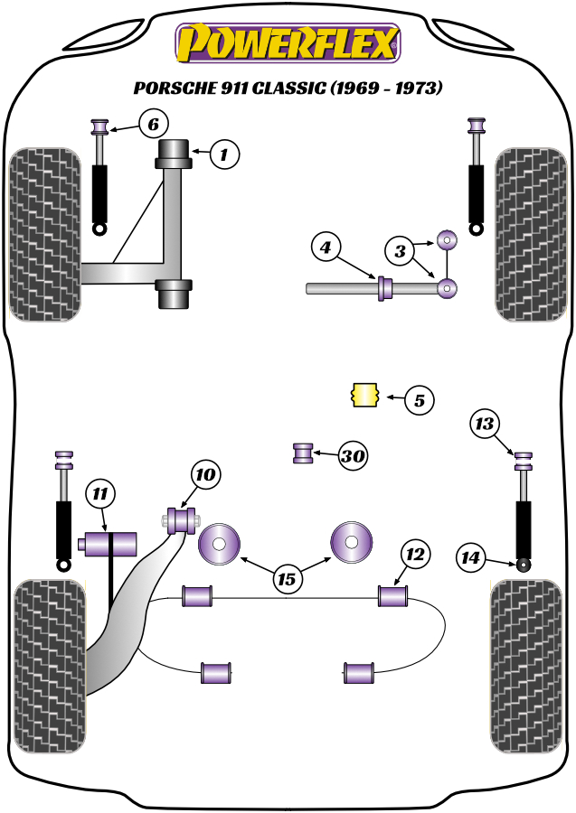 Tuleja stabilizatora przedniego 14mm Powerflex Road Series Porsche 911 Classic (1969-1973) PFF57-1403-14