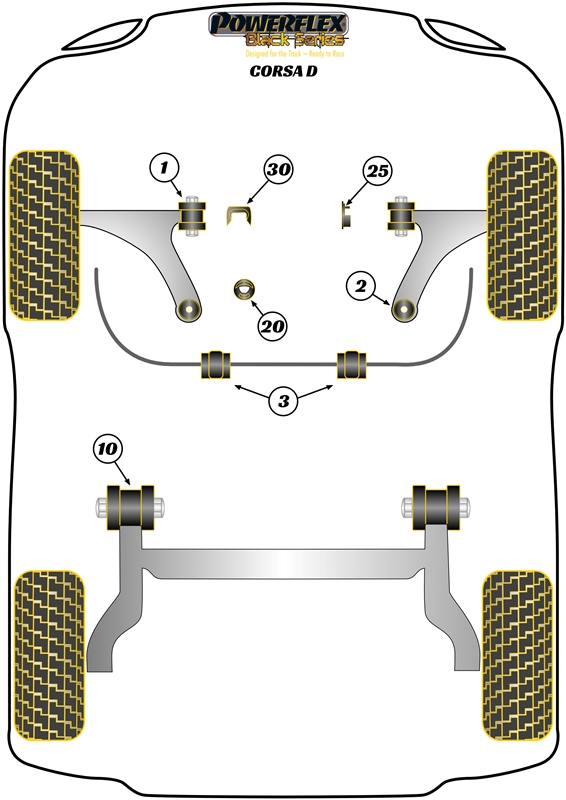 Tuleja stabilizatora przód 20mm Powerflex Black Series Vauxhall / Opel Corsa Models & Corsa D (2006-2014)\Corsa D PFF80-1103-20BLK
