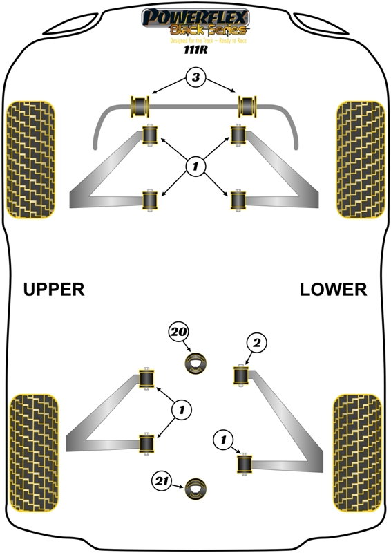 • Ich większa sztywność w porównaniu do tulei gumowych zapewnia lepszą precyzję prowadzenia oraz większą kontrolę nad pojazdem.