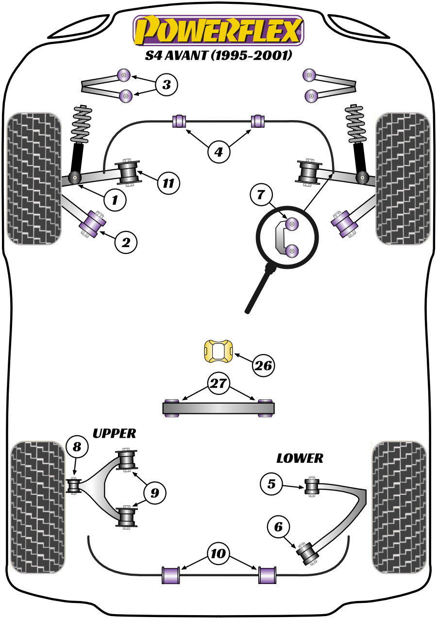 Tuleja stabilizatora przód 25mm Powerflex Road Series Audi A4 / S4 / RS4 & A4 / S4 / RS4 B5 (1995-2001)\S4 Avant (1995-2001) PFF3-204-25