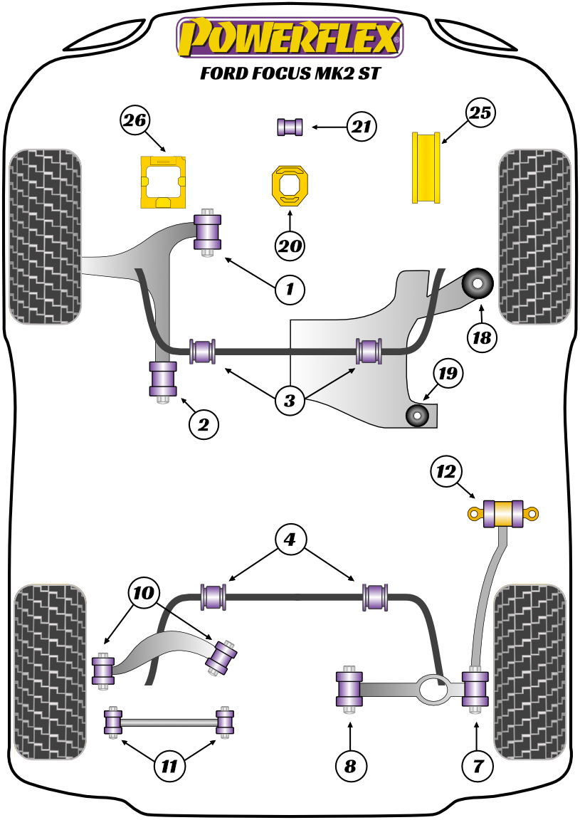 Tuleja tylnego wahacza wleczonego Powerflex Road Series Ford Focus Models & Focus Mk2 inc ST and RS (2005-2010)\Focus MK2 ST (2005-2010) PFR19-812
