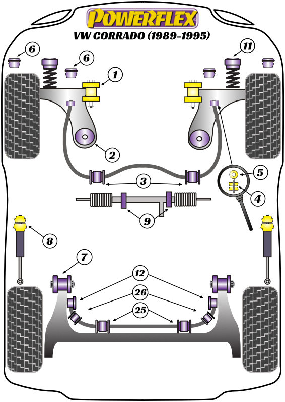 Tulejki przedniego oczkowego łącznika stabilizatora 10mm Powerflex Road Series Volkswagen Corrado (1989-1995) & Corrado 53L (1989 - 1995) PFF85-208-10
