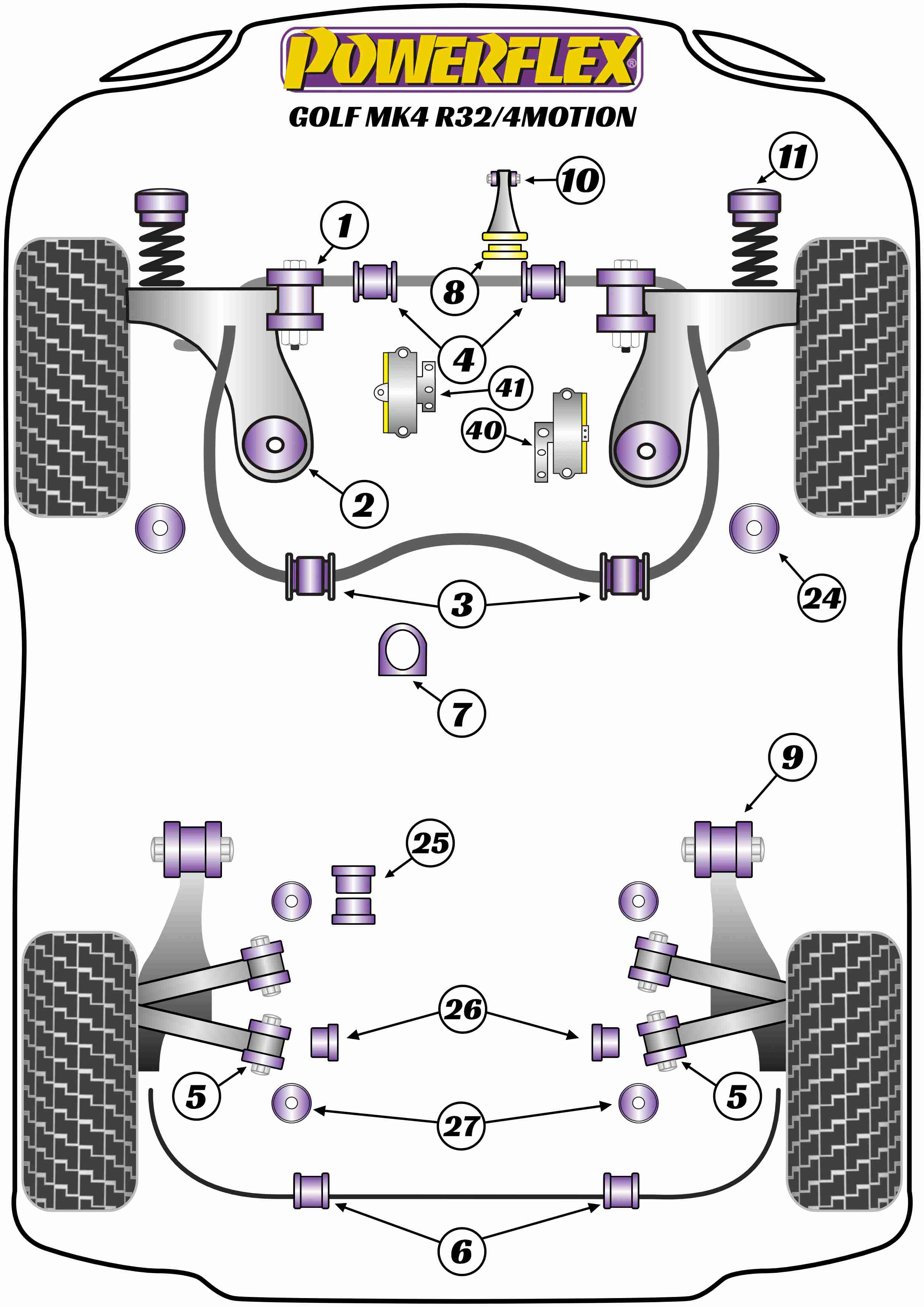 Tylna tuleja drążka stabilizatora 13mm Powerflex Road Series Volkswagen Golf & Golf MK4 (1997 - 2004)\Golf MK4 R32 / 4Motion (1997-2004) PFR3-511-13