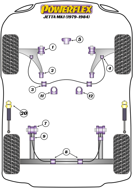 Tylna tuleja drążka stabilizatora 24mm Powerflex Road Series Volkswagen Jetta Models & Jetta MK1 A1 (1979-1984) PFR85-225-24