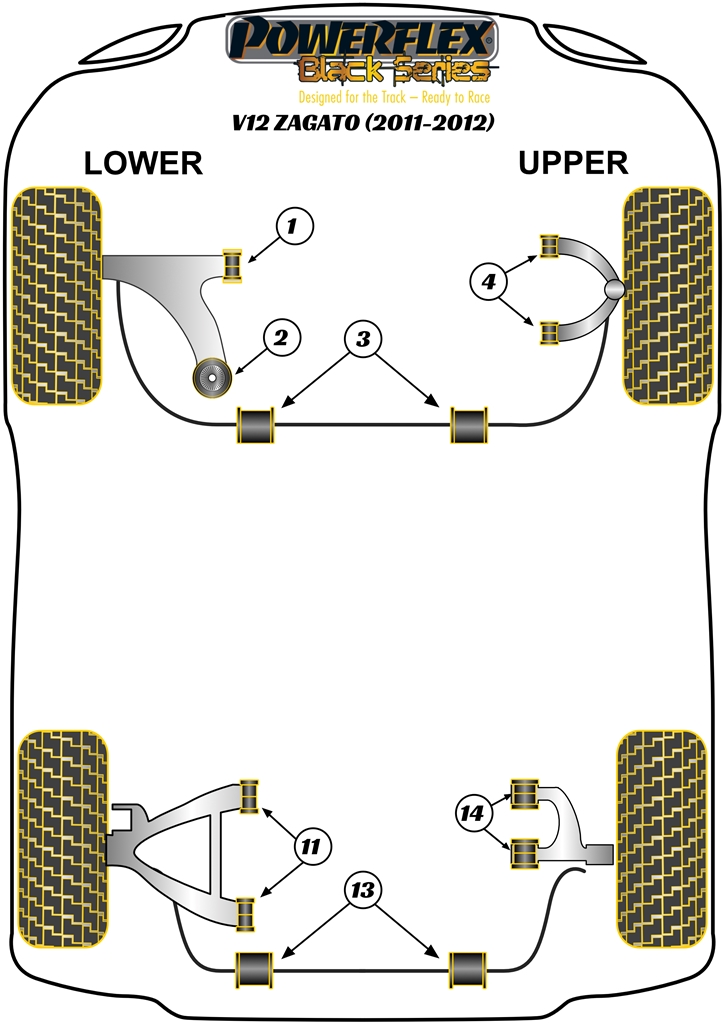 Tylna tuleja przedniego dolnego wahacza Powerflex Black Series Aston Martin V12 ZAGATO (2011-2012) PFF2-102BLK