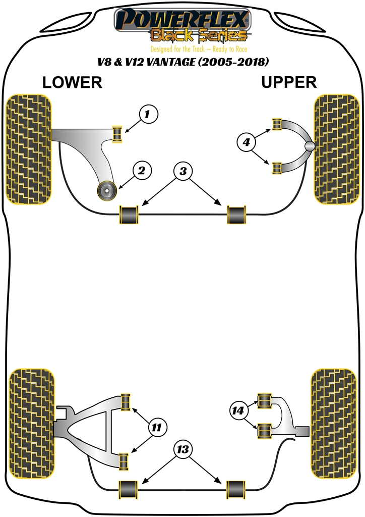 Tylna tuleja przedniego dolnego wahacza Powerflex Black Series Aston Martin V8 & V12 Vantage (2005-2018) PFF2-102BLK