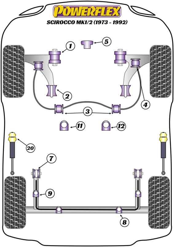 Wewnętrzna tuleja przedniego stabilizatora Eibach 20.5mm Powerflex Road Series Volkswagen Scirocco Models & Scirocco MK1/2 (1973 - 1992) PFF85-216-20.5