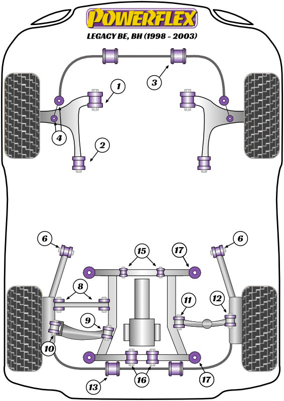Wewnętrzna tylna tuleja tylnego bocznego drążka wzdłużnego Powerflex Road Series Subaru Legacy & Legacy BE, BH (1998 - 2003) PFR69-409
