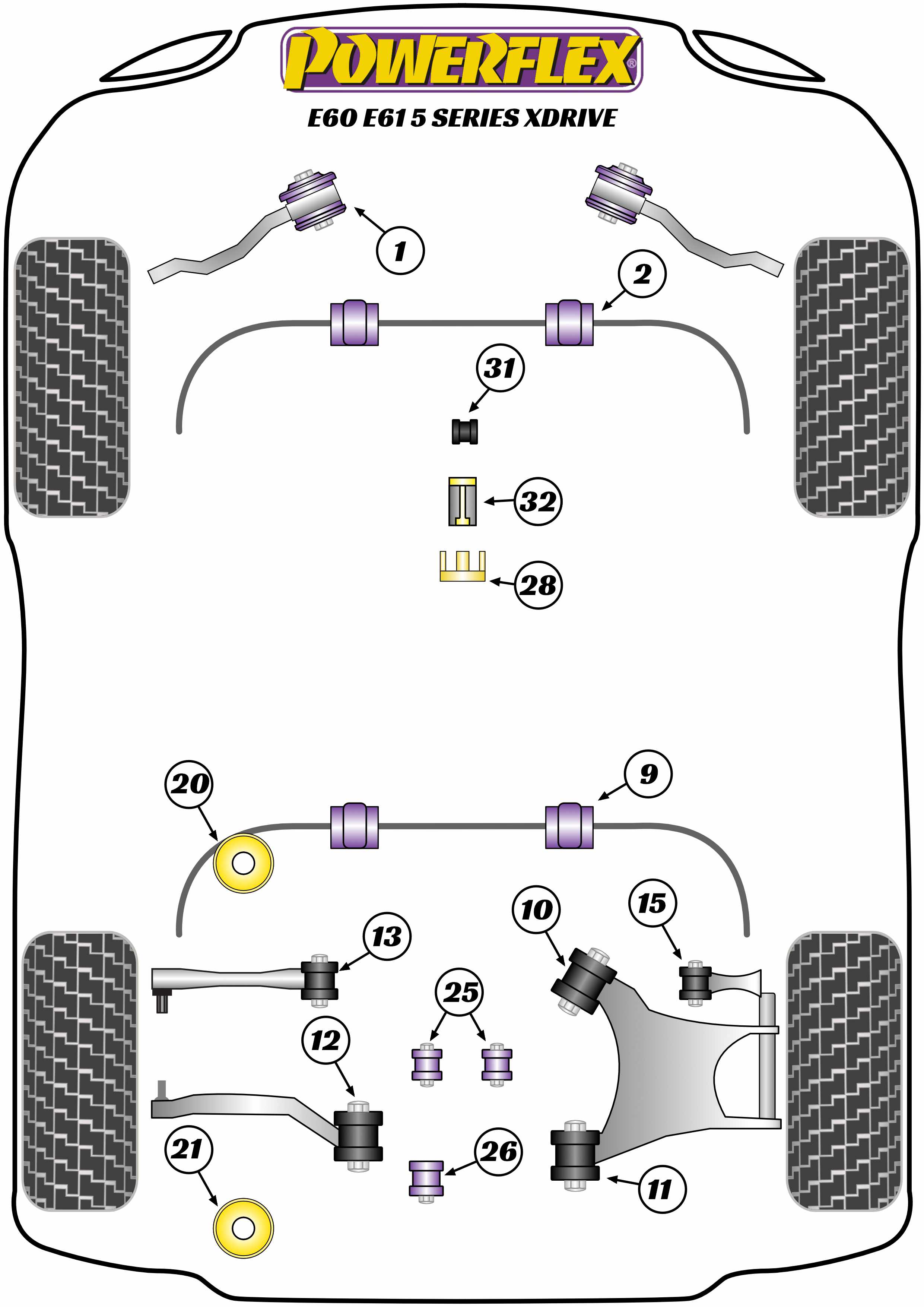Wkładka tulei dyferencjału (tuning/tor) Powerflex Road Series BMW 5 Series & E60, E61 (2003-2010)\E60/E61 xDrive PFF5-4628P