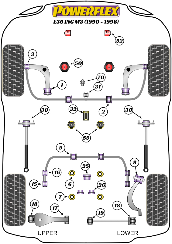 Wkładka tylnej tulei mocowania tylnej ramy pomocniczej Powerflex Road Series BMW 3 Series & E36 inc M3 (1990 - 1998) PFR5-3616