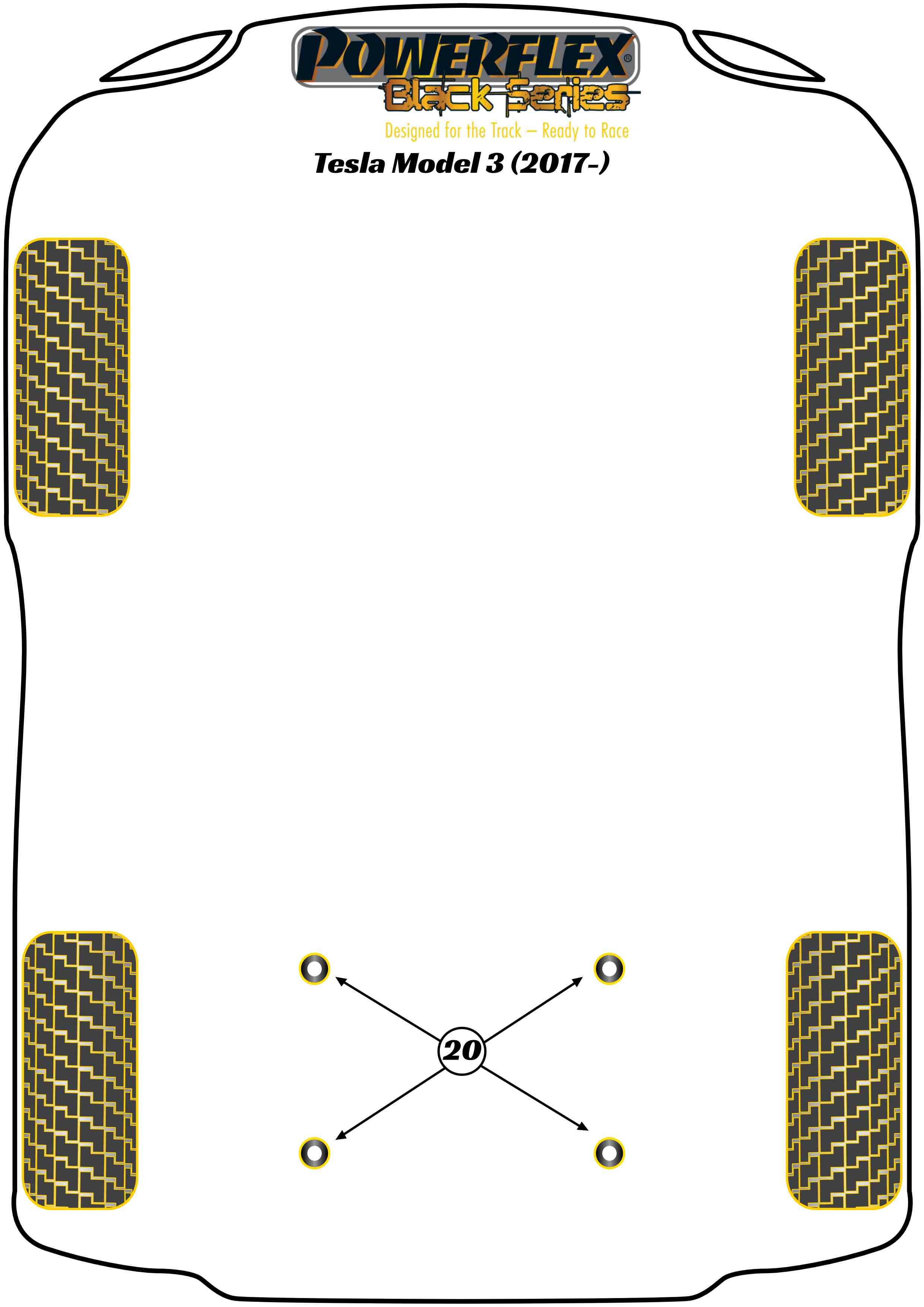 Zestaw wkładek tulei tylnej ramy pomocniczej Powerflex Black Series Tesla Model 3 (2017 - 2023) PFR75-320BLK