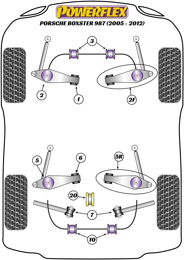 Zewnętrzna tuleja tylnego drążka kontrolnego Powerflex Road Series Porsche 987 Boxster (2005-2012) PFF57-502