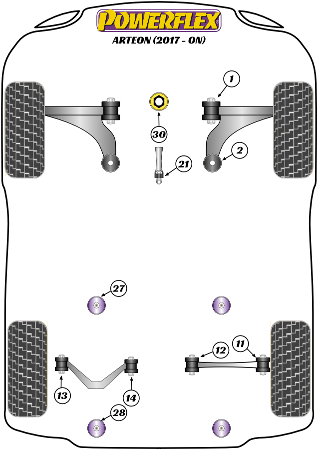 Zewnętrzna tuleja tylnego górnego wahacza Powerflex Road Series Volkswagen Arteon (2017 on) PFR85-513