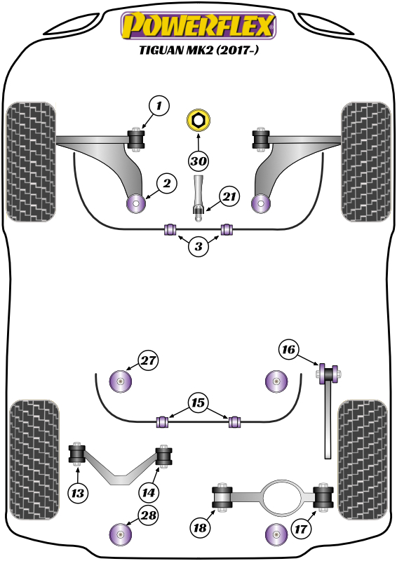 Zewnętrzna tuleja tylnego górnego wahacza Powerflex Road Series Volkswagen Tiguan Models & Tiguan AD/BW MK2 (2017 on) PFR85-513